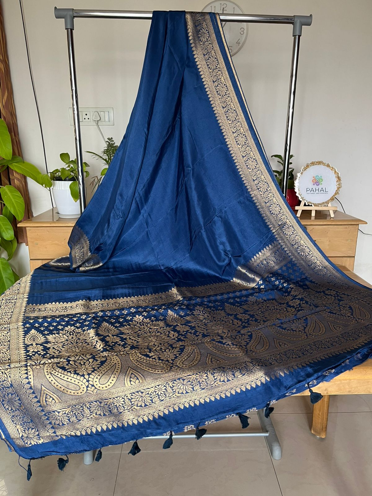 Saree Colour - Blue colour plain body with banarasi weave border and pallu