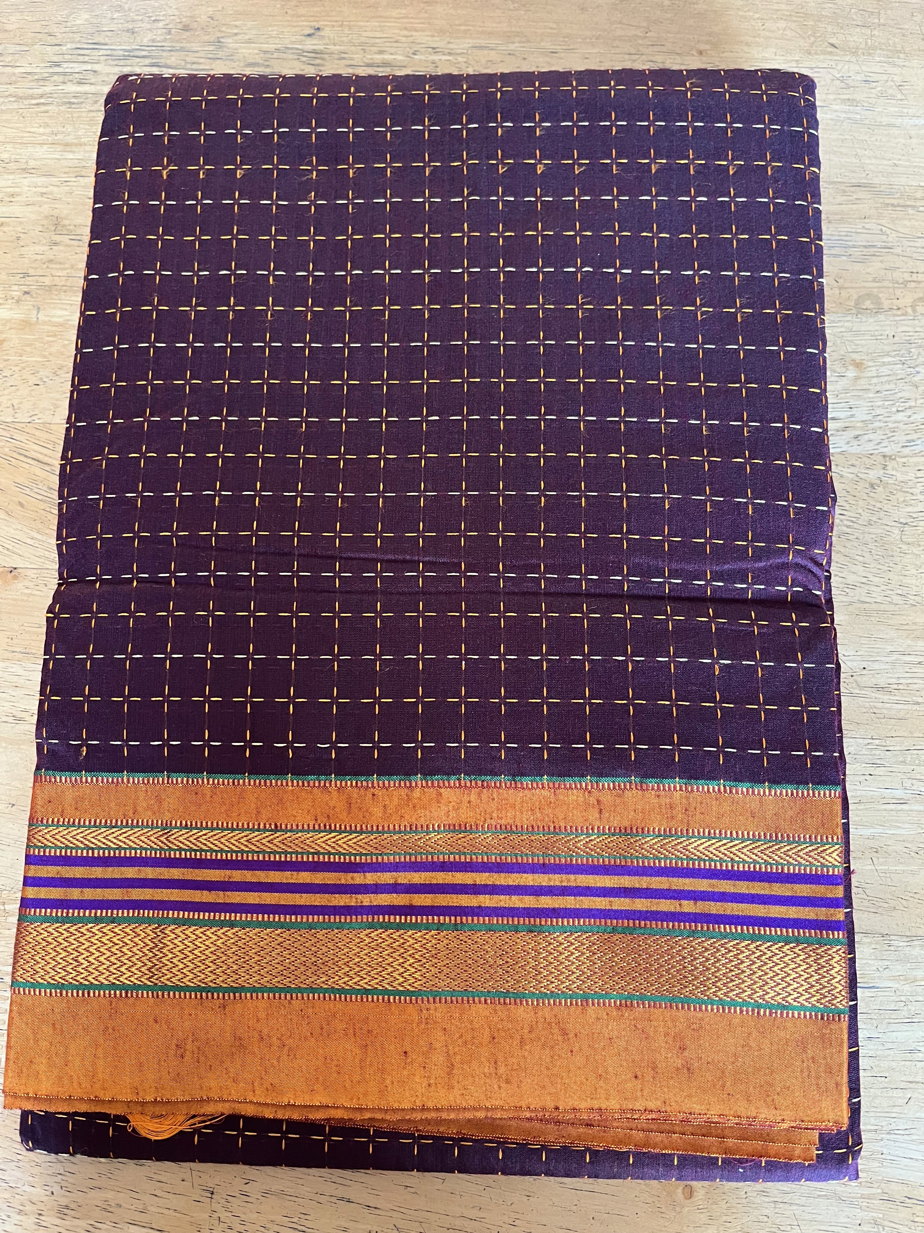 Saree Colour - Wine colour body with checks all over body