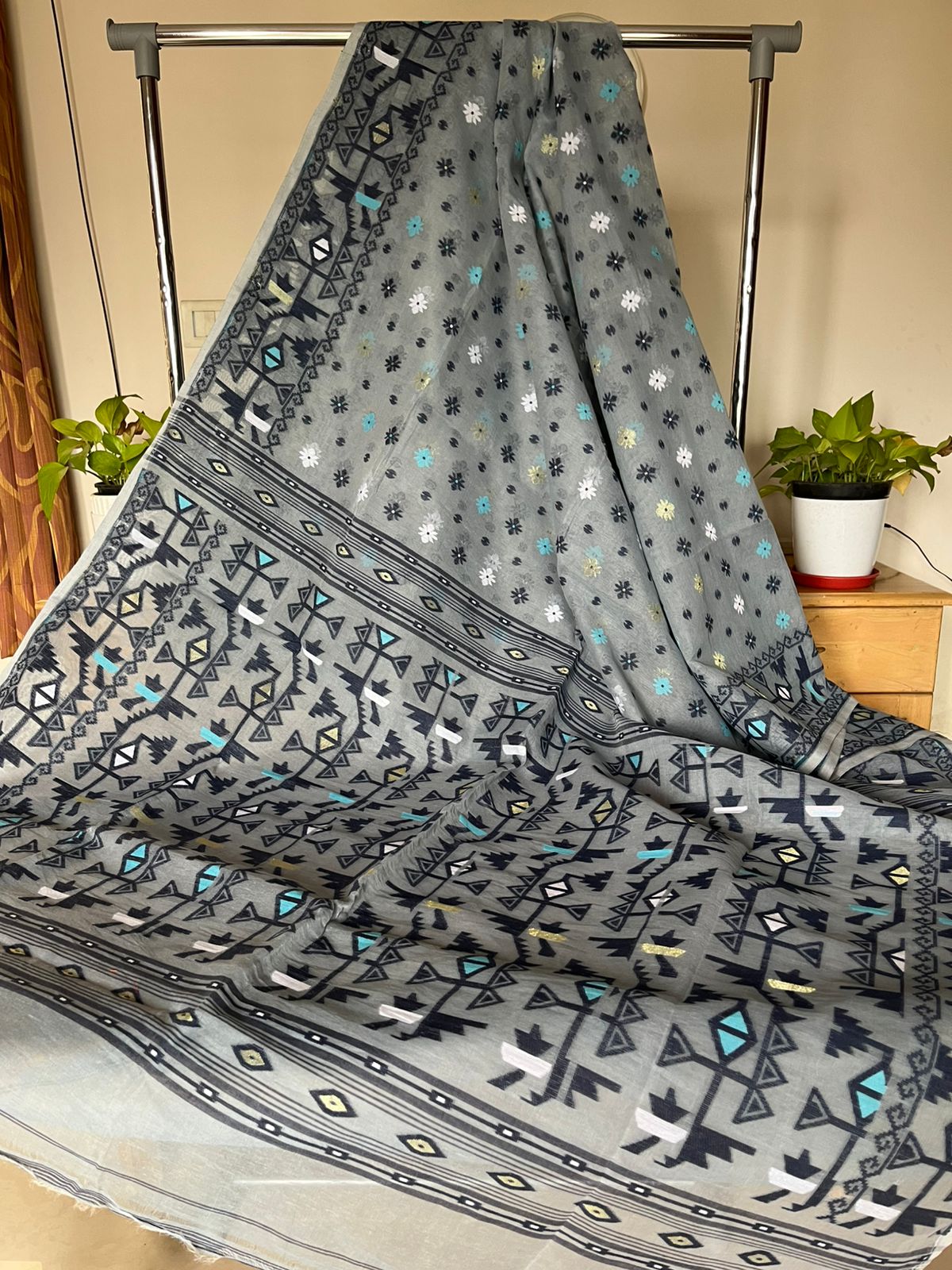 Saree Colour - Grey body with black jamdani weave