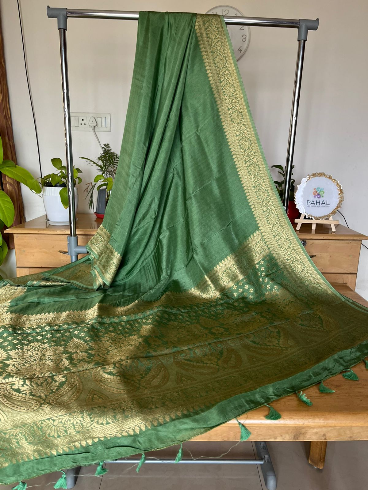 A Dola Banarasi silk saree enriched with a traditional banarasi border, exuding classic charm and luxurious craftsmanship in every drape.